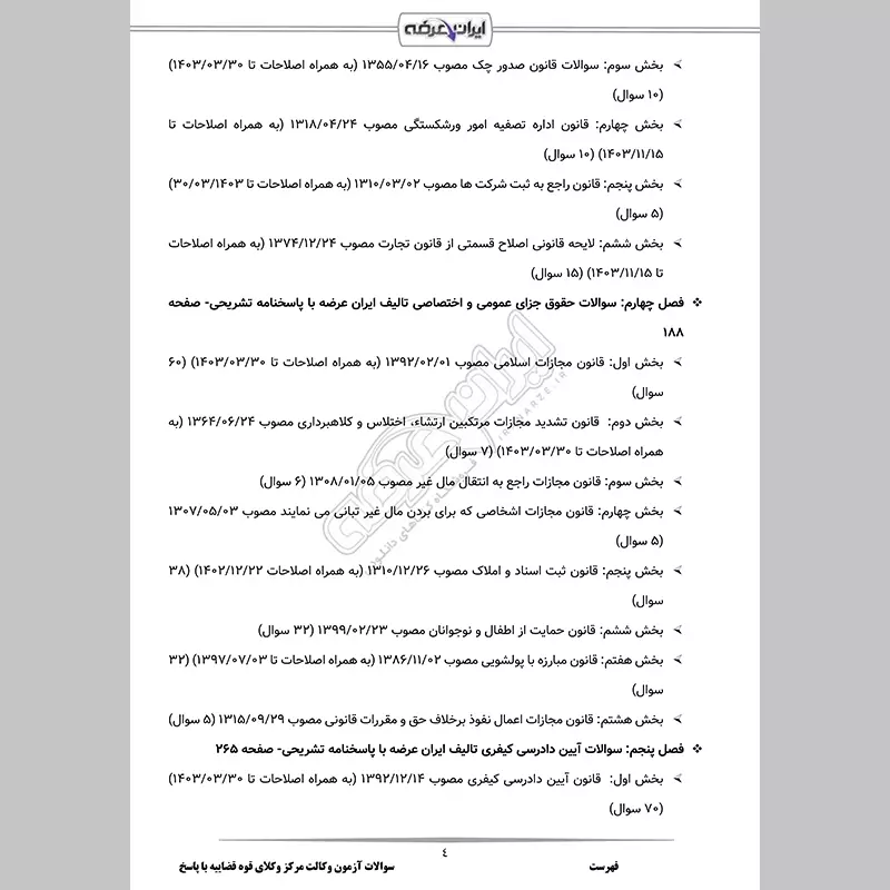 - بخش 1: قانون تجارت مصوب 1311/02/01 (به همراه اصلاحات تا 1403/11/15) (100 سوال)