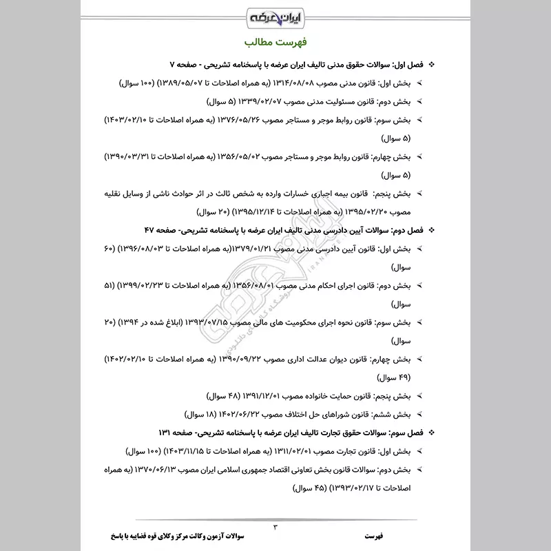 - فصل 13: سوالات آزمون وکالت قوه قضاییه آذر 1403 - صفحه 597 (135 سوال)