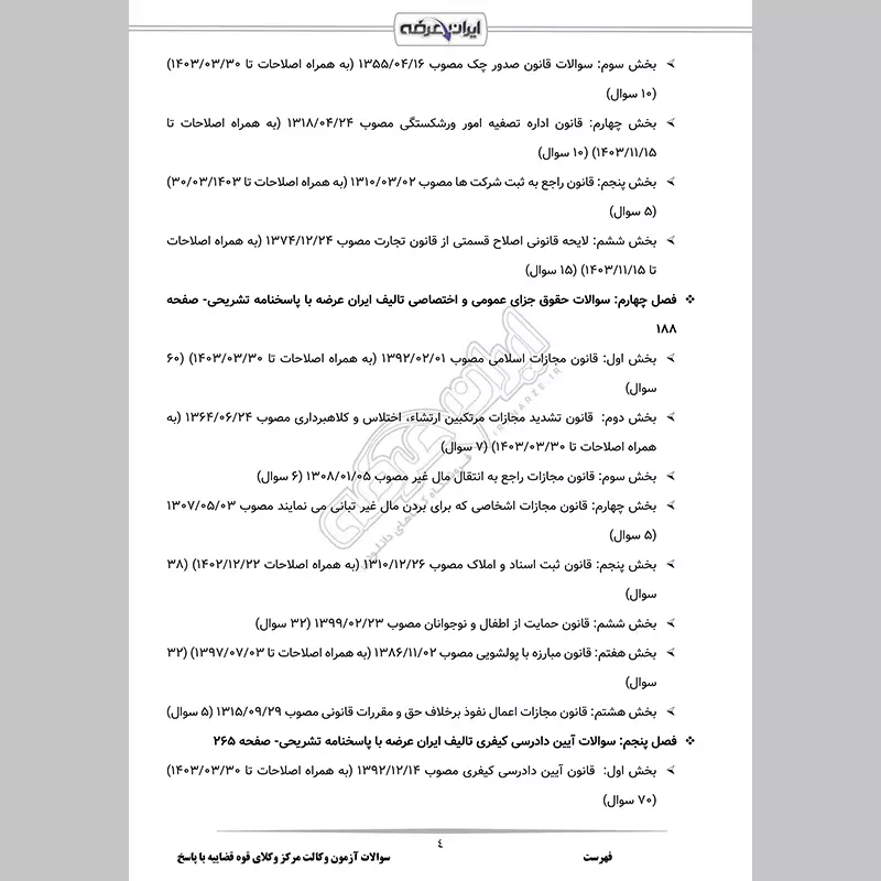 - بخش 1: قانون مجازات اسلامی مصوب 1392/02/01 (به همراه اصلاحات تا 1403/03/30) (60 سوال)