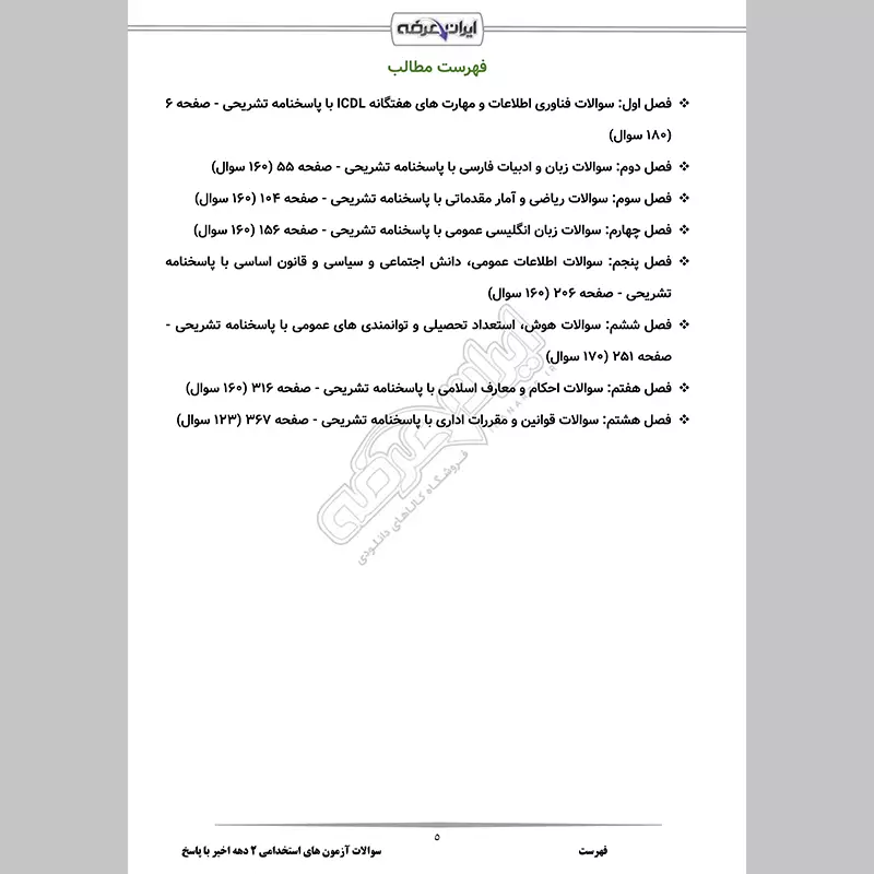 - فصل 5: سوالات اطلاعات عمومی، دانش اجتماعی و سیاسی و قانون اساسی - صفحه 206 (160 سوال)