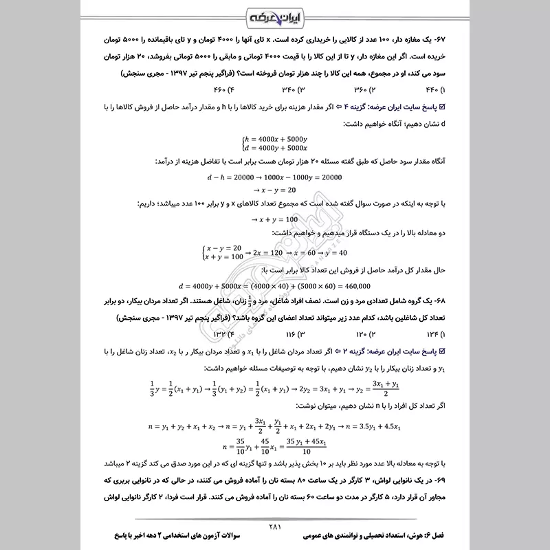 - فصل 3: سوالات ریاضی و آمار مقدماتی - صفحه 104 (160 سوال)