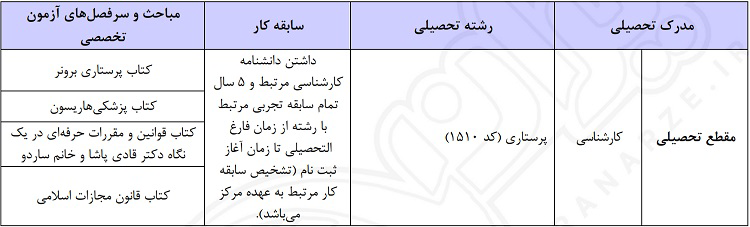 منابع کارشناسی رسمی دادگستری رشته پرستاری