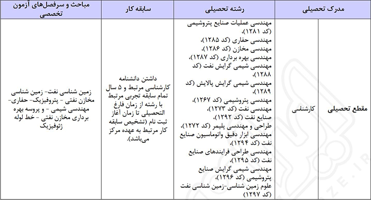 جدول مواد آزمون حیطه تخصصی صنایع نفت کارشناس رسمی دادگستری 1404