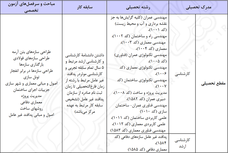 جدول مواد آزمون حیطه تخصصی پدافند غیر عامل سازه ها و زیر ساخت ها کارشناسی رسمی دادگستری 1404