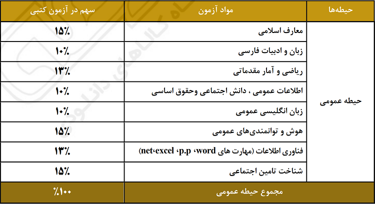 جدول مواد عمومی آزمون دارویار شرکت کار و تامین 1404