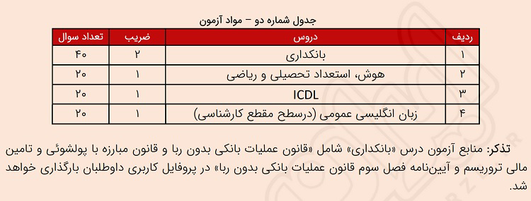 ضرایب و تعداد سوالات آزمون استخدامی بانک شهر