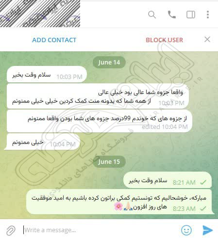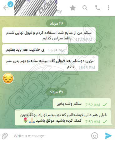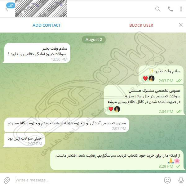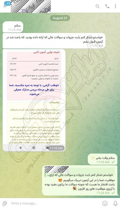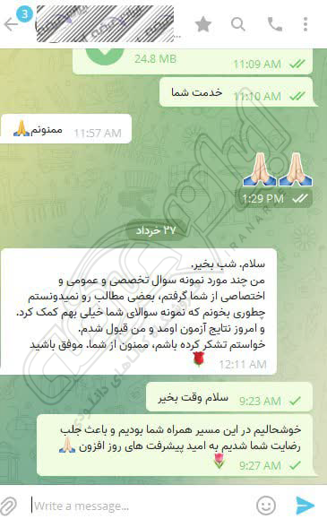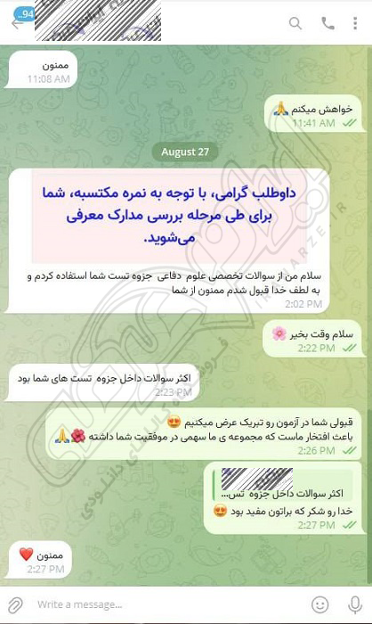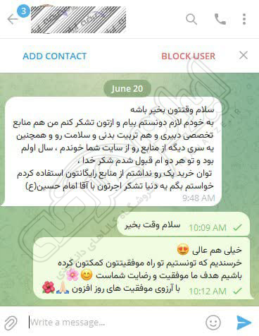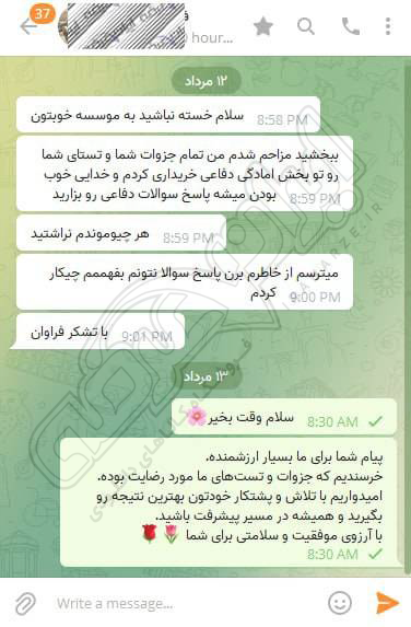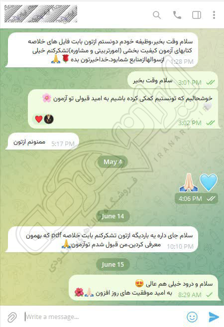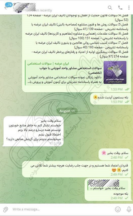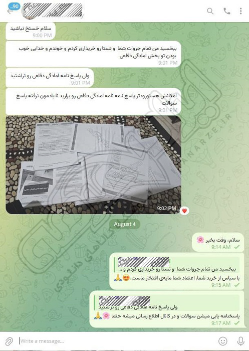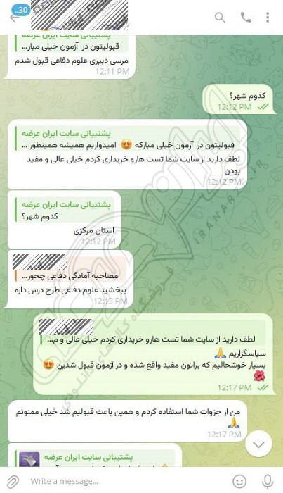 رضایت کاربر تلگرام از محصولات ایران عرضه برای آزمون استخدامی دبیری علوم دفاعی آموزش و پرورش 10 مرداد 1404