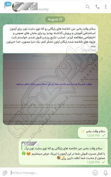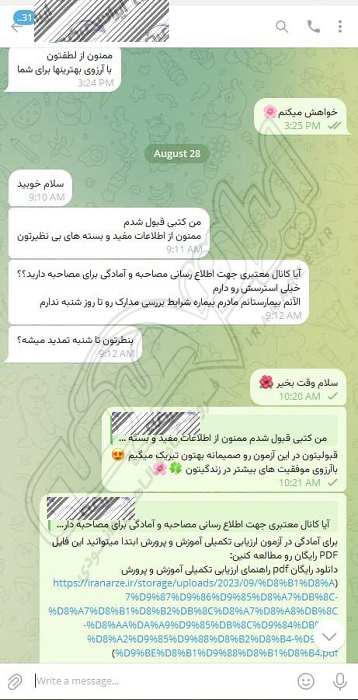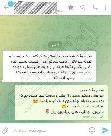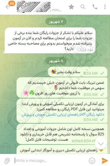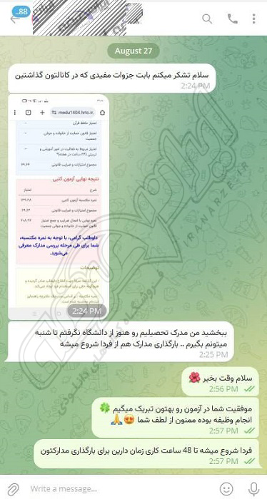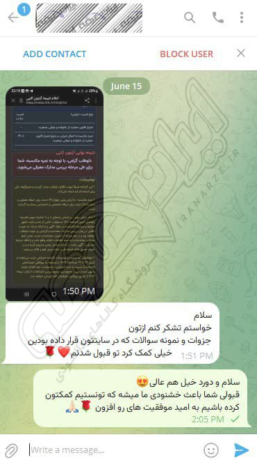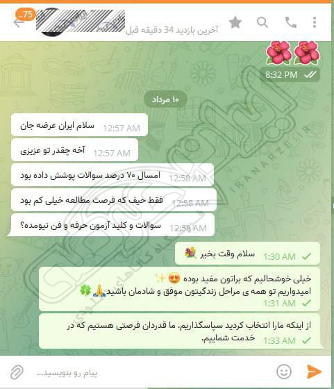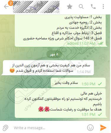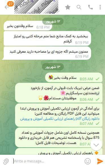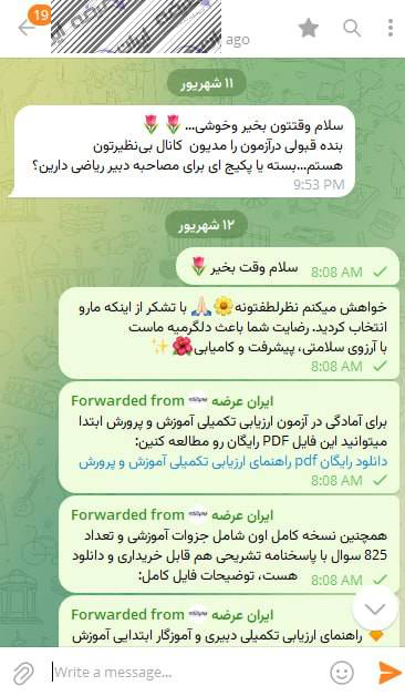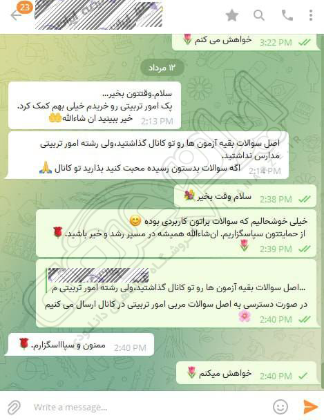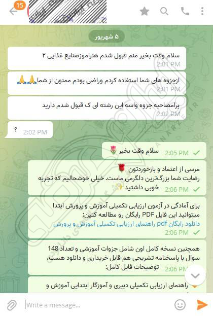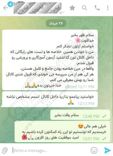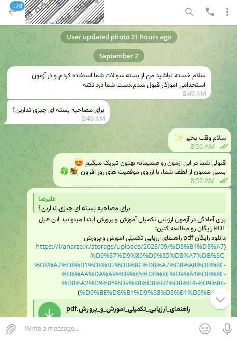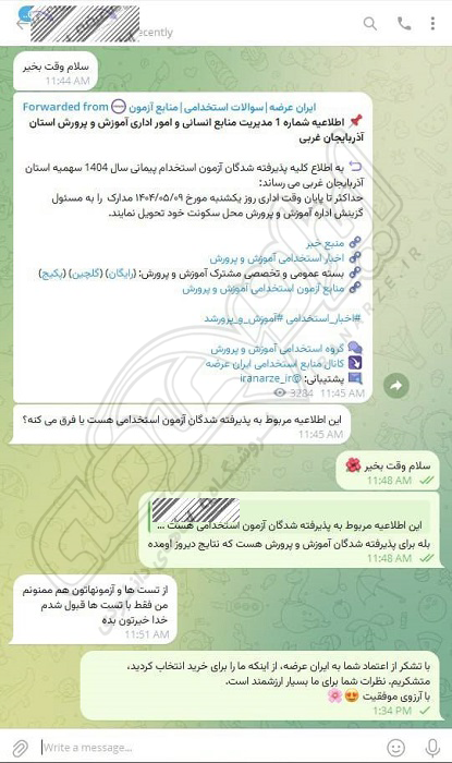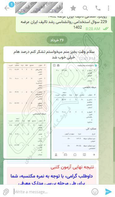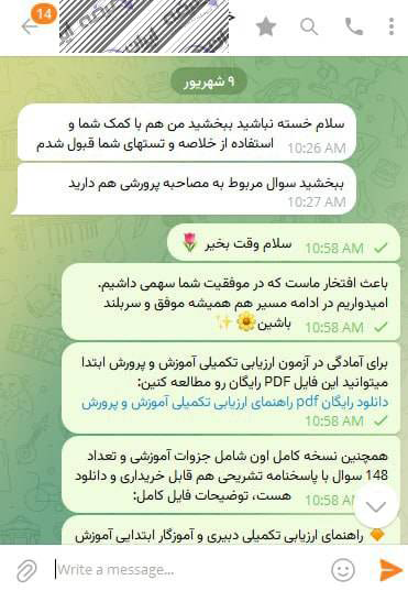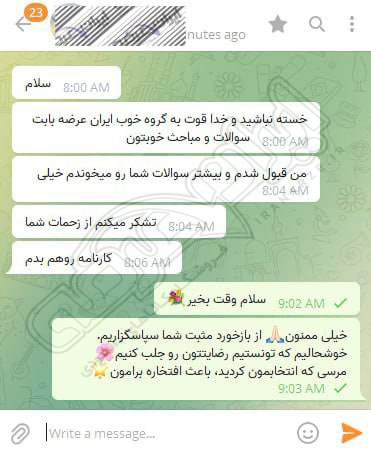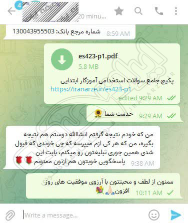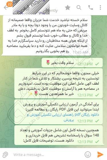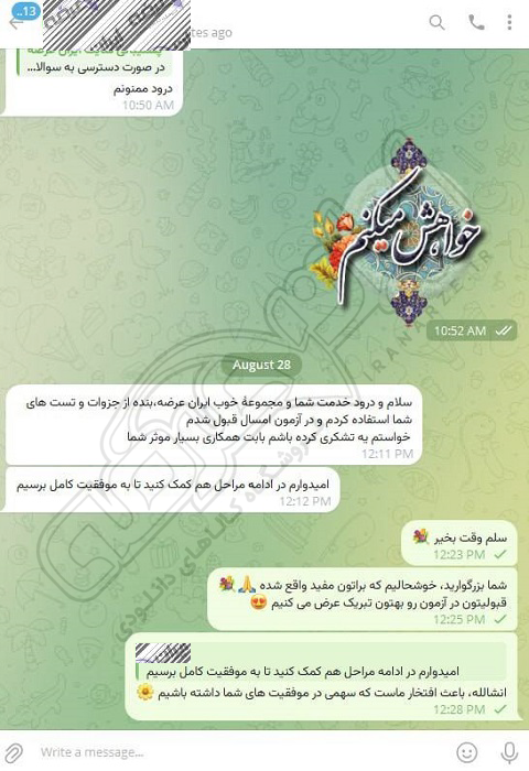 رضایت و قبولی نهایی کاربر تلگرام از محصولات ایران عرضه برای آزمون استخدامی مربی امور تربیتی آموزش و پرورش 10 مرداد 1404