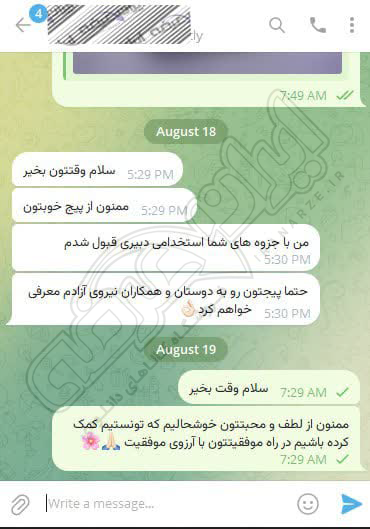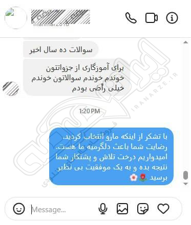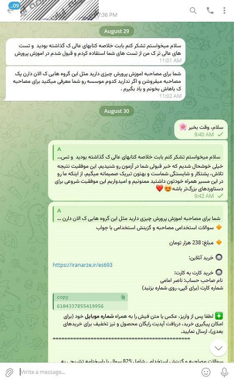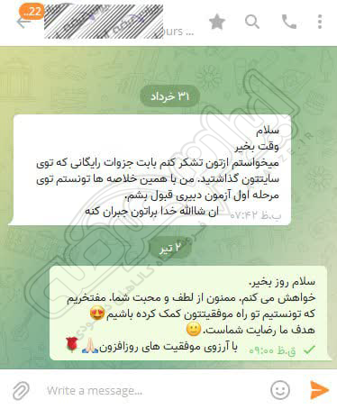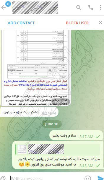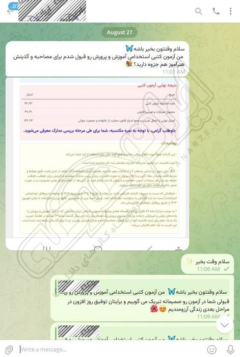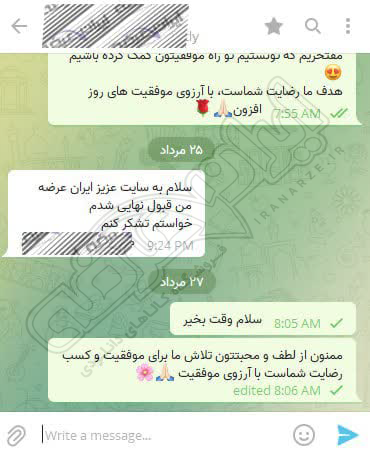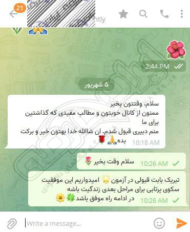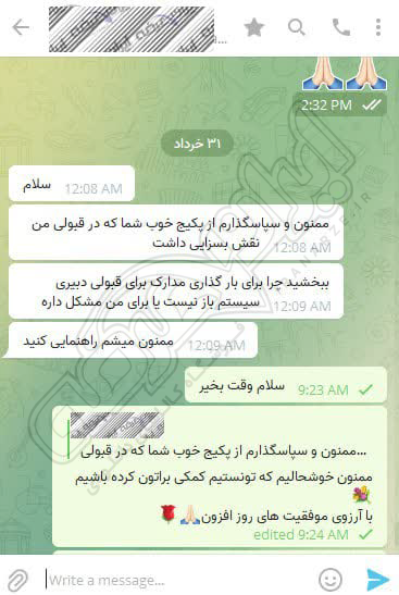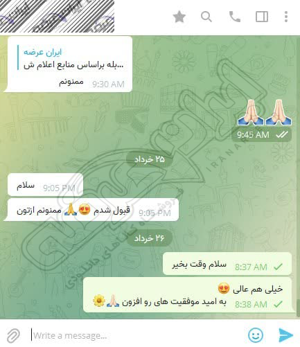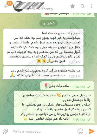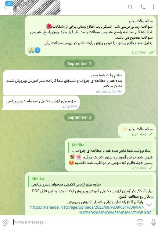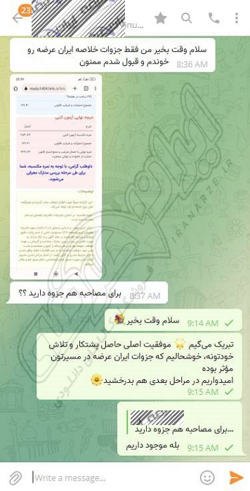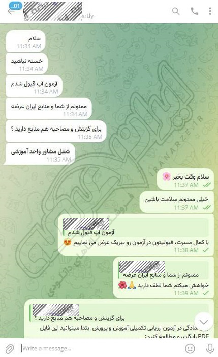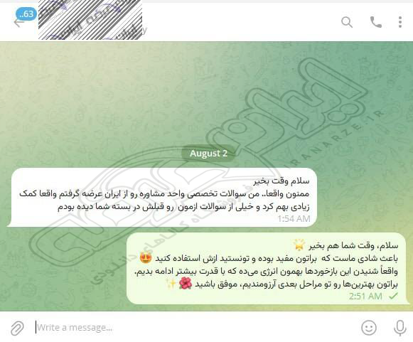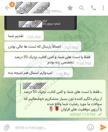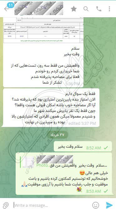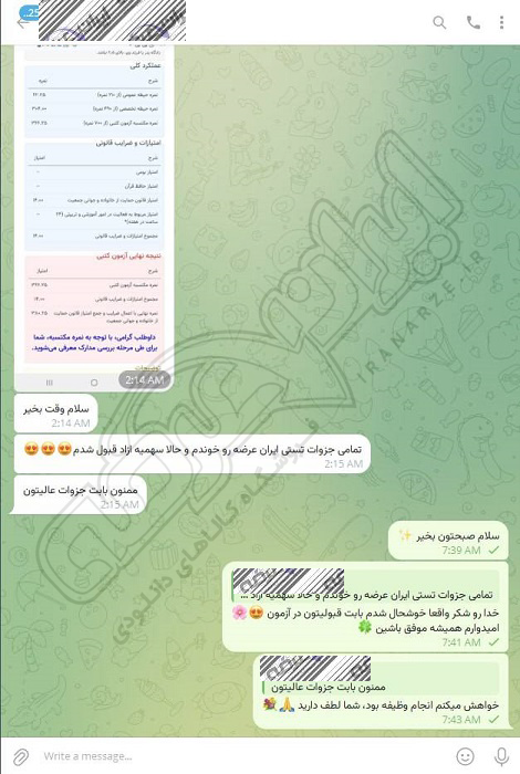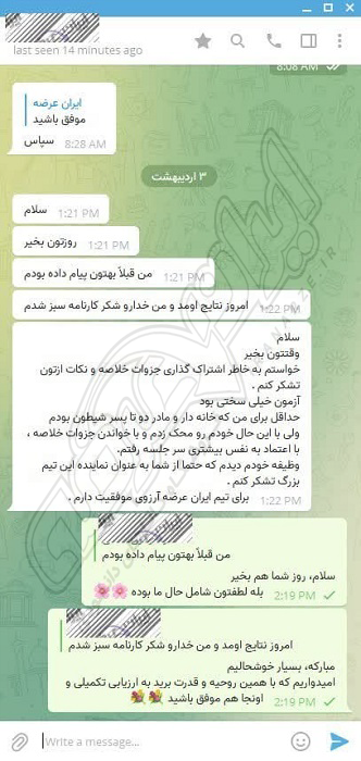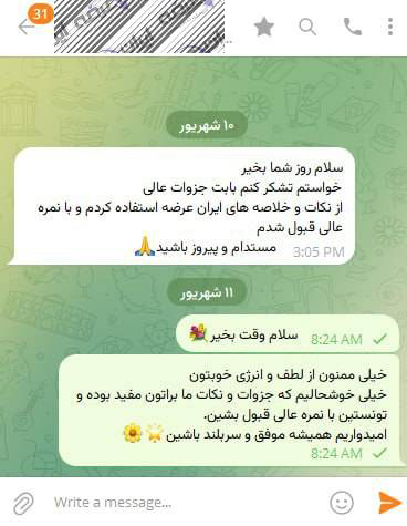 رضایت و قبولی نهایی کاربر تلگرام از محصولات ایران عرضه برای آزمون استخدامی مربی امور تربیتی آموزش و پرورش 10 مرداد 1404