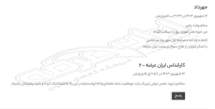 رضایت و قبولی نهایی کاربر تیکت از محصولات ایران عرضه برای آزمون استخدامی هنرآموز برق آموزش و پرورش 28 اردیبهشت 1403