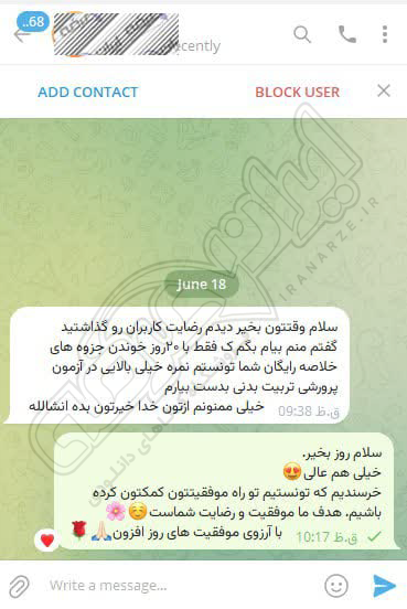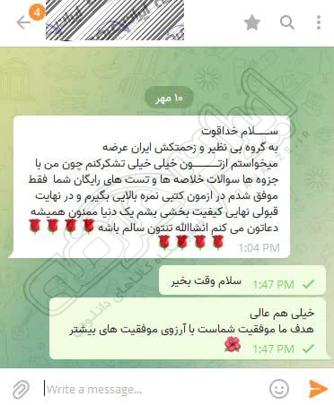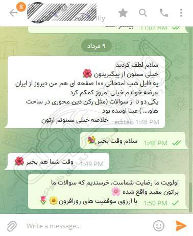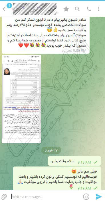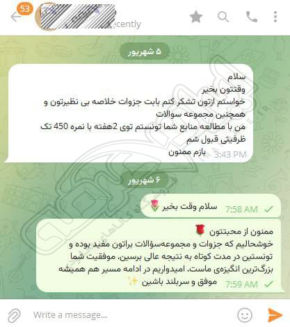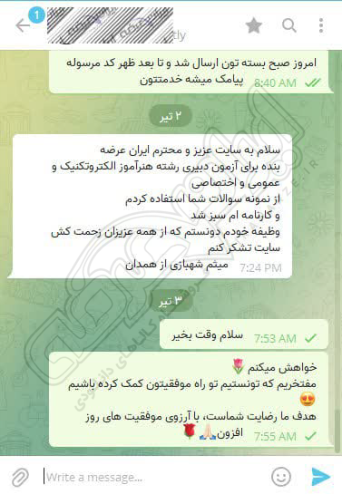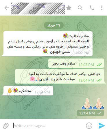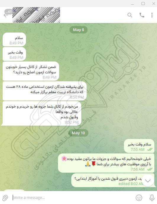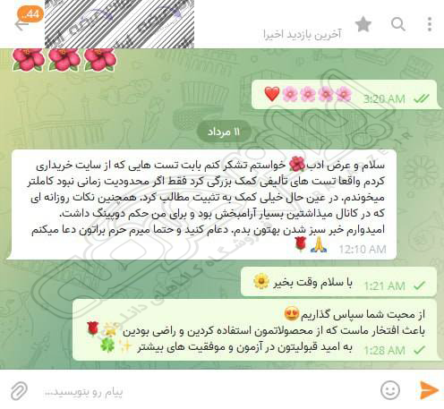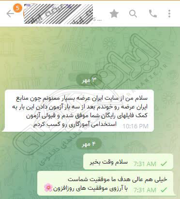 رضایت کاربر تلگرام از محصولات ایران عرضه برای آزمون استخدامی دبیری آموزش و پرورش 10 مرداد 1404