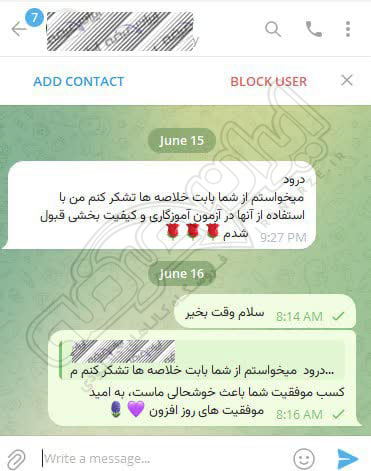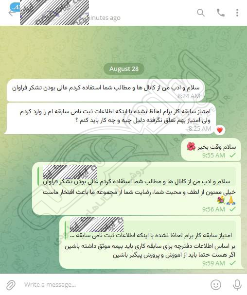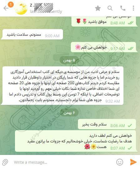 رضایت کاربر تلگرام از محصولات ایران عرضه برای آزمون استخدامی کیفیت بخشی آموزش و پرورش 30 فروردین 1403