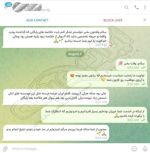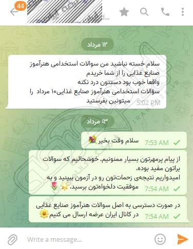 رضایت و قبولی کاربر تلگرام از محصولات ایران عرضه برای آزمون استخدامی هنرآموز صنایع غذایی آموزش و پرورش 10 مرداد 1404