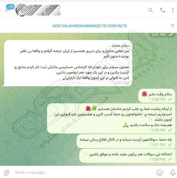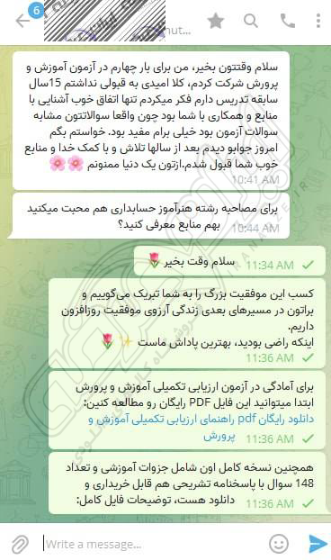 رضایت و قبولی کاربر تلگرام از محصولات ایران عرضه برای آزمون استخدامی هنرآموز حسابداری آموزش و پرورش 10 مرداد 1404