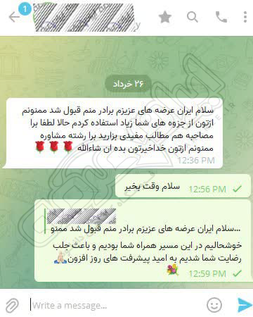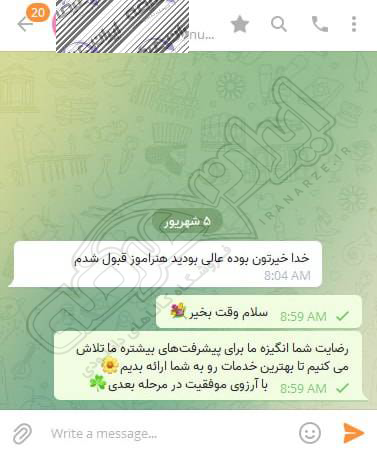 رضایت و قبولی کاربر تلگرام از محصولات ایران عرضه برای آزمون استخدامی سرایداری آموزش و پرورش 28 آذر 1404