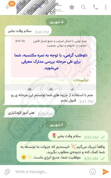 رضایت و قبولی نهایی کاربر تلگرام از محصولات ایران عرضه برای آزمون استخدامی هنرآموز کودکیاری آموزش و پرورش 10 مرداد 1404