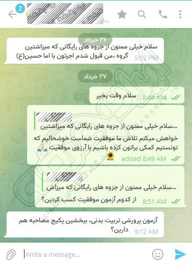 رضایت کاربر تلگرام از محصولات ایران عرضه برای آزمون استخدامی مراقبت سلامت و بهداشت آموزش و پرورش 10 مرداد 1404