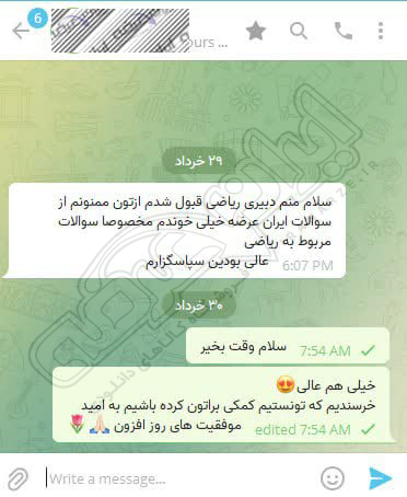رضایت و قبولی کاربر تلگرام از محصولات ایران عرضه برای آزمون استخدامی دبیری ریاضی آموزش و پرورش 10 مرداد 1404