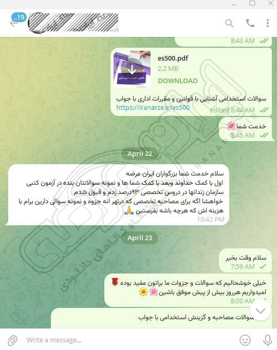 در این صفحه رضایت و قبولی های واقعی کاربران در شبکه های اجتماعی مختلف از محصولات ایران عرضه برای آزمون استخدامی سازمان زندان ها و اقدامات تامینی و تربیتی را مشاهده می کنید.