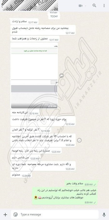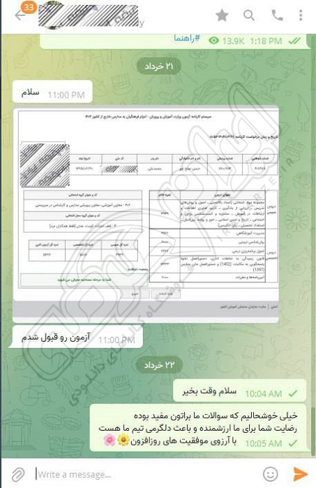رضایت و قبولی کاربر واتساپ از محصولات ایران عرضه برای سومین آزمون اعزام به خارج فرهنگیان 22 فروردین 1404