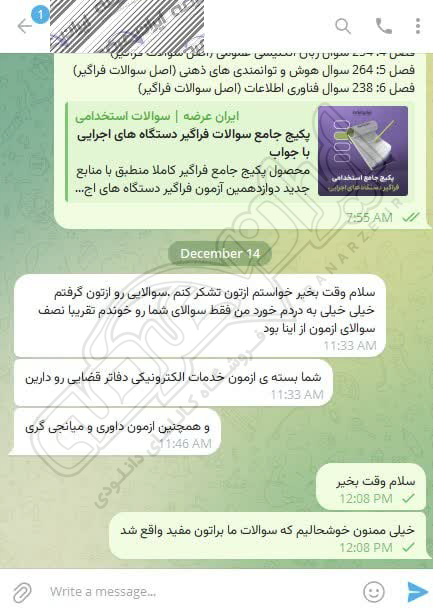 رضایت کاربر تلگرام از محصولات ایران عرضه برای دوازدهمین آزمون استخدامی فراگیر 23 آذر 1403
