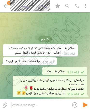 رضایت کاربر تلگرام از محصولات ایران عرضه برای سیزدهمین آزمون استخدامی فراگیر 27 شهریور 1404