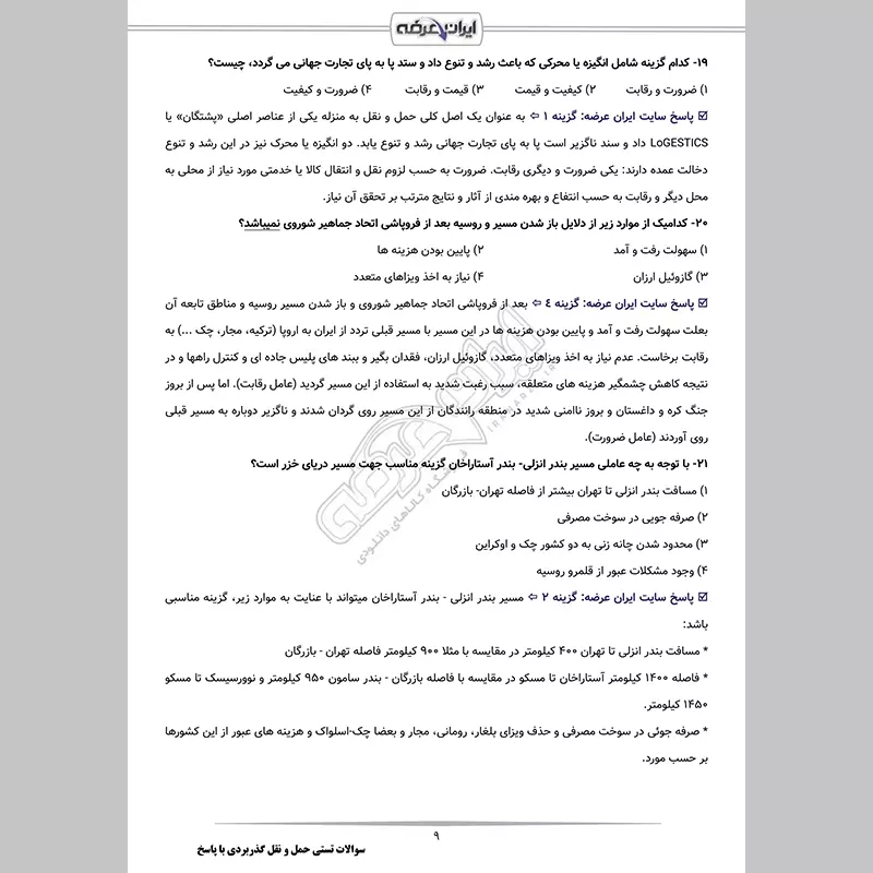 سوالات آزمون تاسیس شرکت حمل و نقل بین المللی کالا با جواب