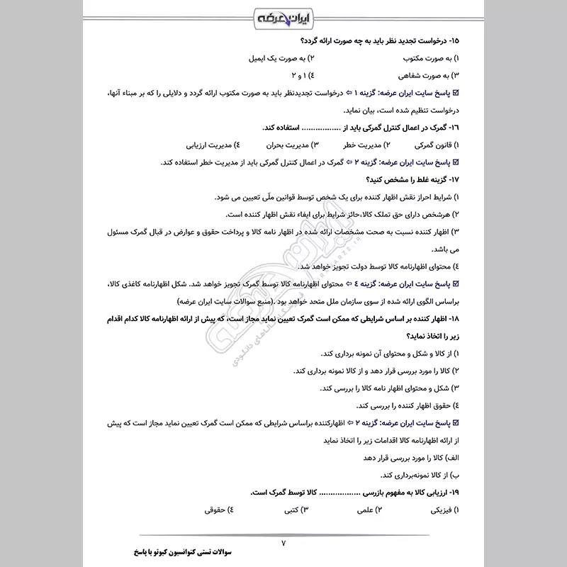 سوالات آزمون تاسیس شرکت حمل و نقل بین المللی کالا با جواب