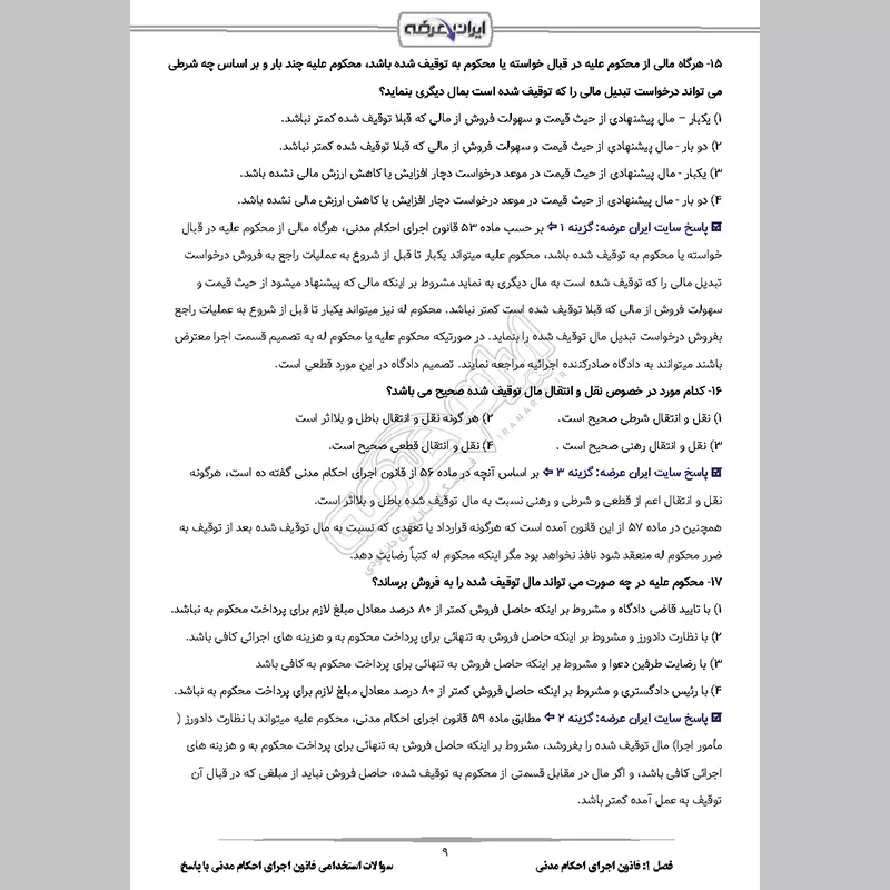 سوالات استخدامی مسئول ابلاغ و اجرا با جواب