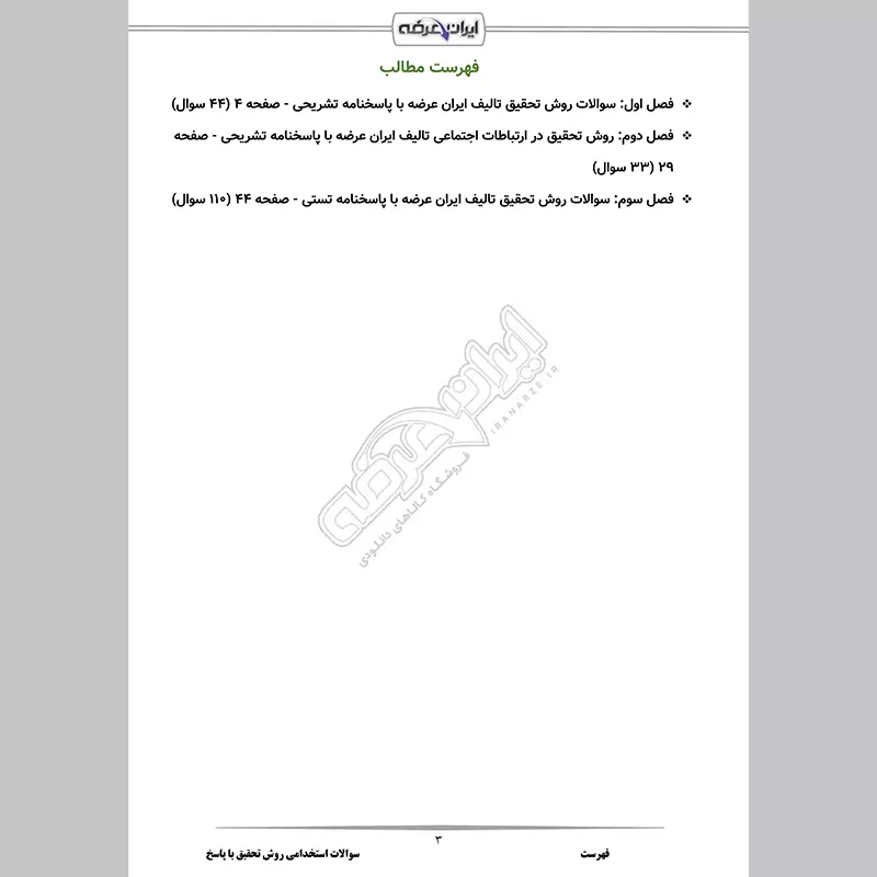 • فصل 3: سوالات روش تحقیق تالیف ایران عرضه با پاسخنامه تستی - صفحه 44 (110 سوال)