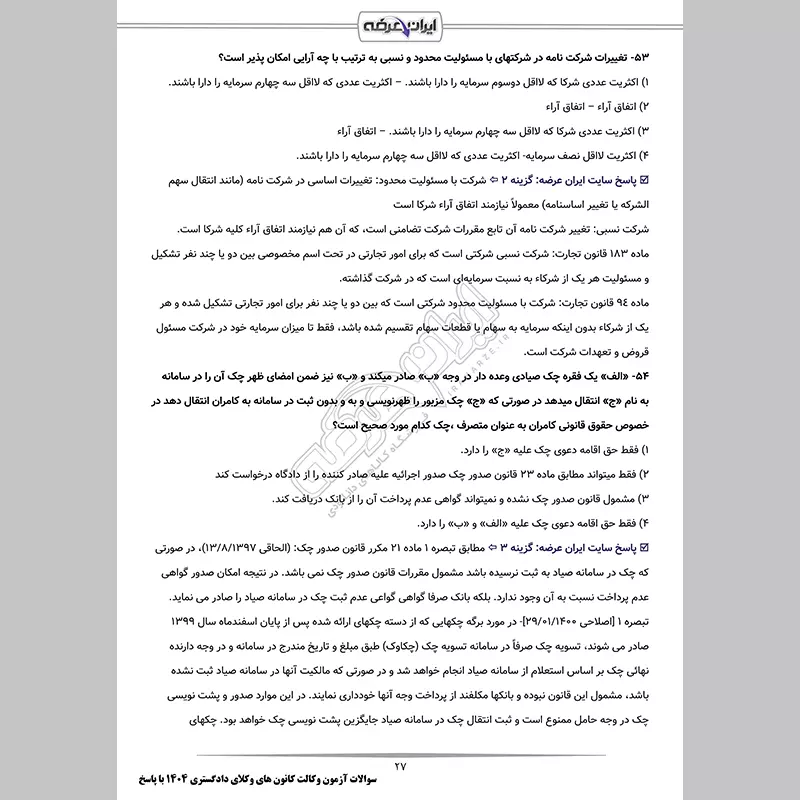 سوالات آزمون وکالت اسکودا (کانون وکلای دادگستری) با جواب