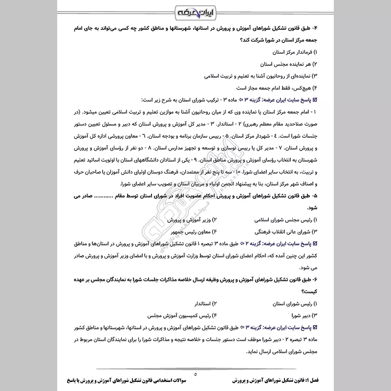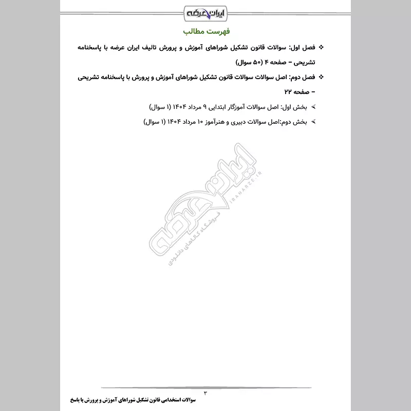 گروه آموزشی ایران عرضه اقدام به ارائه سوالات استخدامی قانون تشکیل شوراهای آموزش و پرورش برای آزمون استخدام آموزش و پرورش (آموزگار ابتدایی، دبیری، هنرآموز و استادکار) نموده است. این بسته شامل نمونه سوالات تالیفی قانون تشکیل شوراهای آموزش و پرورش با قابلیت پرینت و دارای پاسخنامه میباشد. کارشناسان ما بر این باورند که این مجموعه عاملی مهم برای آمادگی شما در این آزمون بوده و قدمی مهم برای موفقیت در آن خواهد بود. با حل این سوالات، به طور کامل به سبک سوالات آزمون مسلط میشوید.