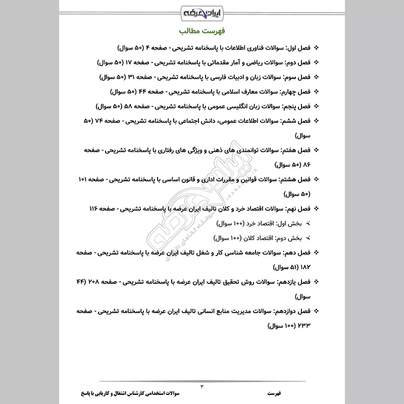 گروه آموزشی ایران عرضه اقدام به ارائه سوالات استخدامی کارشناس اشتغال و کاریابی نموده است. این مجموعه شامل نمونه سوالات کارشناس اشتغال و کاریابی با قابلیت پرینت و دارای پاسخنامه میباشد. کارشناسان ما بر این باورند که این مجموعه عاملی مهم برای آمادگی شما در این آزمون بوده و قدمی مهم برای موفقیت در آن خواهد بود. با حل این سوالات، به طور کامل به سبک سوالات آزمون مسلط میشوید.
