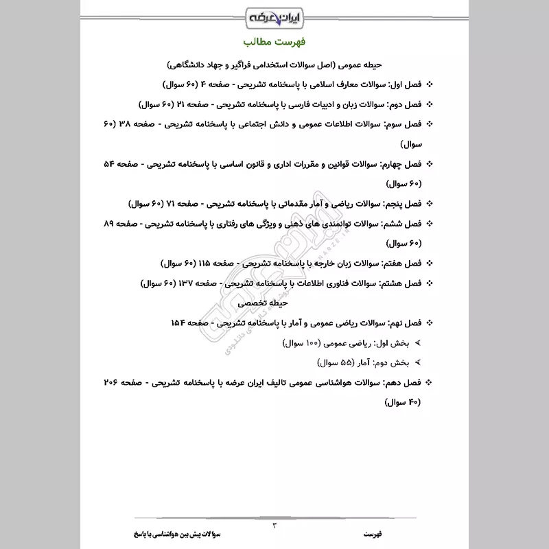 گروه آموزشی ایران عرضه اقدام به ارائه سوالات آزمون استخدامی پیش بین هواشناسی نموده است. این بسته شامل سوالات عمومی ادوار گذشته آزمون استخدامی فراگیر دستگاه های اجرایی و سازمان جهاد دانشگاهی (مجری) به همراه سوالات حیطه تخصصی تالیف ایران عرضه با قابلیت پرینت میباشد. کارشناسان ما بر این باورند که این مجموعه عاملی مهم برای آمادگی شما در این آزمون بوده و قدمی مهم برای موفقیت در آن خواهد بود.