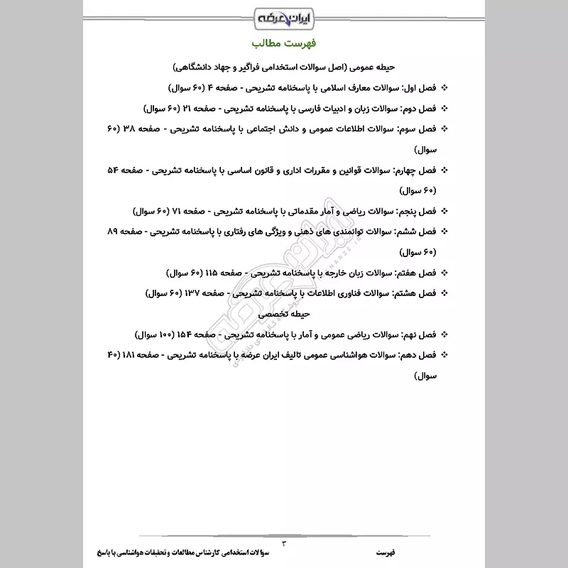 گروه آموزشی ایران عرضه اقدام به ارائه سوالات آزمون استخدامی کارشناس مطالعات و تحقیقات هواشناسی نموده است. این بسته شامل سوالات عمومی ادوار گذشته آزمون استخدامی فراگیر و سازمان جهاد دانشگاهی (مجری آزمون) به همراه سوالات تالیفی حیطه تخصصی با پاسخنامه تشریحی و قابلیت پرینت میباشد. کارشناسان ما بر این باورند که این مجموعه عاملی مهم برای آمادگی شما در این آزمون بوده و قدمی مهم برای موفقیت در آن خواهد بود.