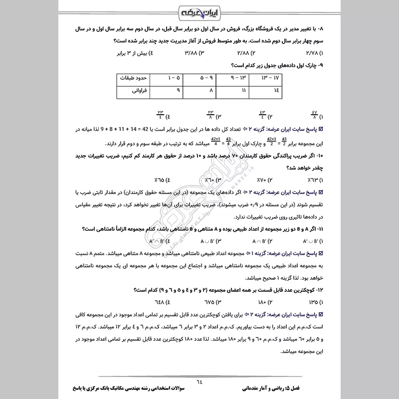 - فصل 5: سوالات ریاضی و آمار مقدماتی – صفحه 62 (60 سوال)