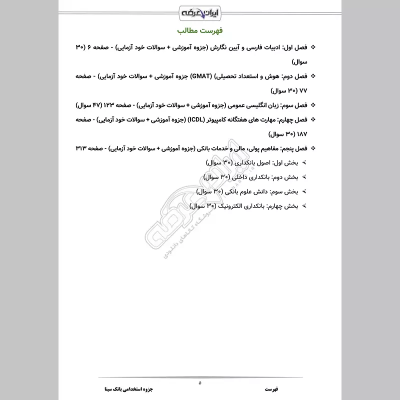 گروه آموزشی ایران عرضه اقدام به ارائه بسته ای جدید برای درسنامه آزمون استخدامی بانک سینا نموده است. این محصول شامل جزوه آموزشی، نکات مهم و سوالات خودآزمایی آزمون استخدامی بانک سینا می باشد که در دو نسخه pdf و چاپی قابل دریافت است. کارشناسان ما بر این باورند که این مجموعه عاملی مهم برای آمادگی شما در این آزمون بوده و قدمی مهم برای موفقیت در آن خواهد بود. با مطالعه این جزوه آموزشی در زمان کوتاه مهم ترین مطالب منابع آزمون تامین اجتماعی را فرا خواهید گرفت.