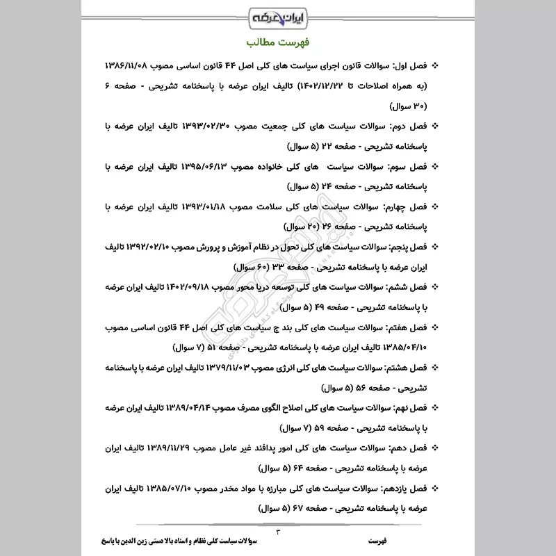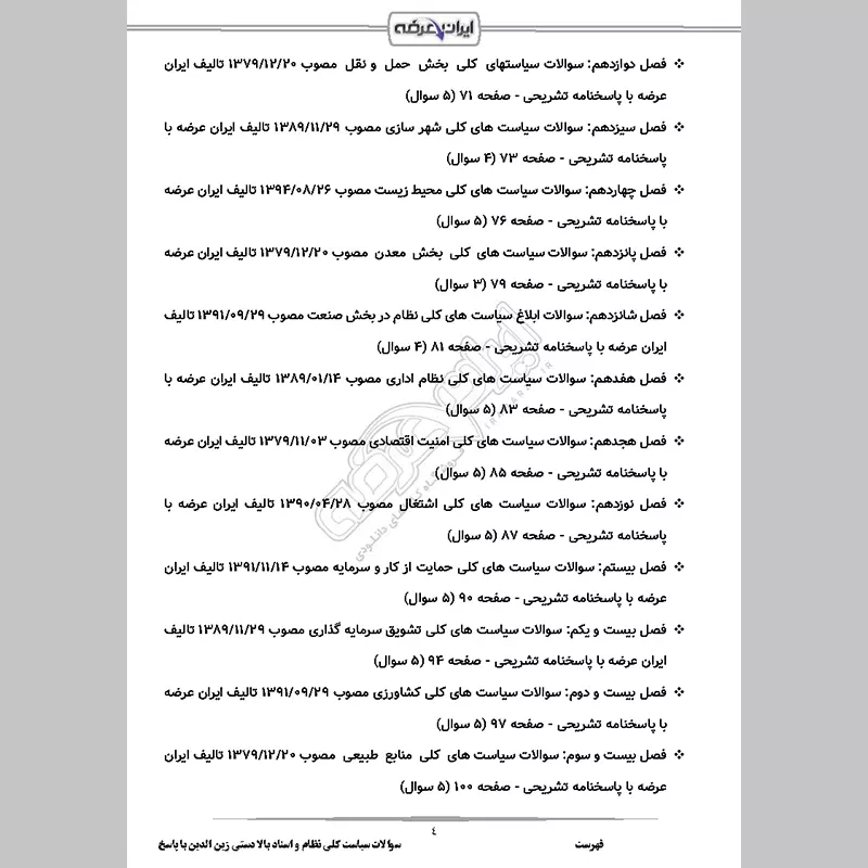 سوالات استخدامی سیاست کلی نظام و اسناد بالادستی با جواب