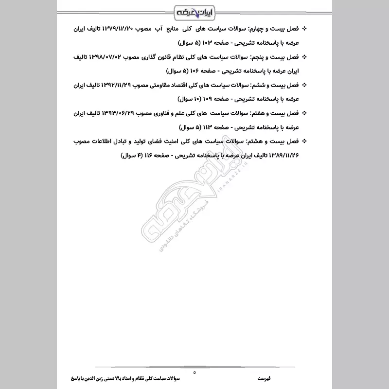 پاسخسوالات استخدامی سیاست کلی نظام و اسناد بالادستی زین الدین با جواب