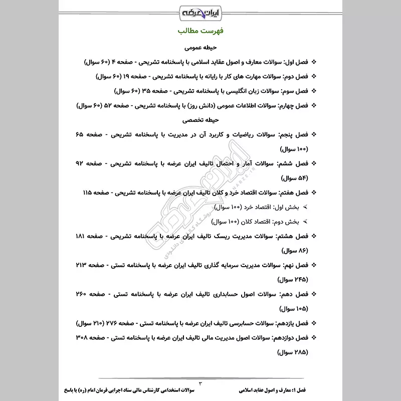 گروه آموزشی ایران عرضه اقدام به ارائه سوالات آزمون استخدامی کارشناس مالی ستاد اجرایی فرمان امام (ره) نموده است. این بسته شامل اصل سوالات عمومی به همراه سوالات تخصصی با پاسخنامه تشریحی و قابلیت پرینت میباشد. کارشناسان ما بر این باورند که این مجموعه عاملی مهم برای آمادگی شما در این آزمون بوده و قدمی مهم برای موفقیت در آن خواهد بود.