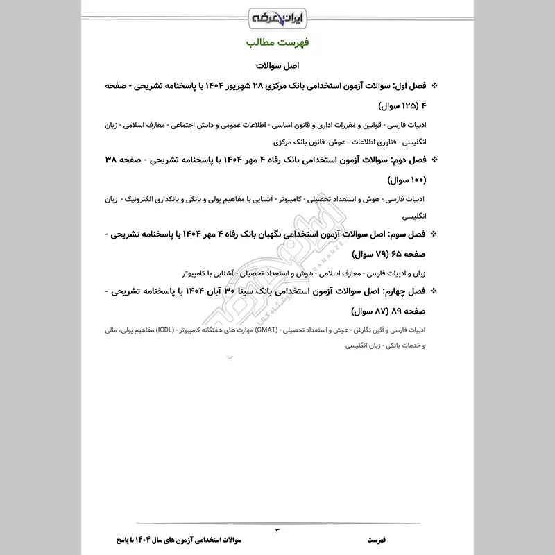 - فصل 2: سوالات آزمون استخدامی بانک رفاه 4 مهر 1404 - صفحه 26 (100 سوال)