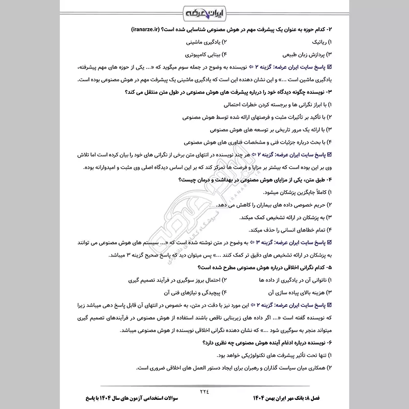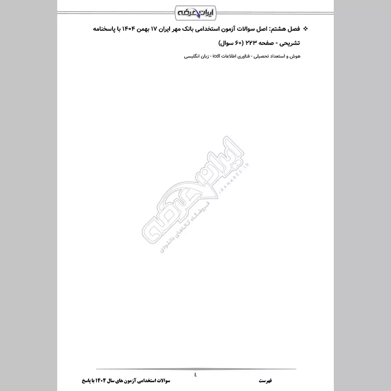 - فصل 8: اصل سوالات آزمون استخدامی بانک مهر ایران 17 بهمن 1404 - صفحه 223 (60 سوال)
