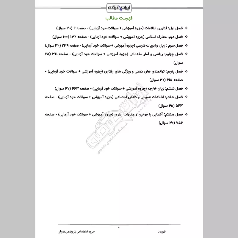 گروه آموزشی ایران عرضه اقدام به ارائه بسته ای جدید برای درسنامه آزمون استخدامی پتروشیمی شیراز کرمان نموده است. این محصول شامل جزوه آموزشی، نکات مهم و سوالات خودآزمایی آزمون استخدامی پتروشیمی شیراز می باشد که در دو نسخه pdf و چاپی قابل دریافت است. کارشناسان ما بر این باورند که این مجموعه عاملی مهم برای آمادگی شما در این آزمون بوده و قدمی مهم برای موفقیت در آن خواهد بود. با مطالعه این جزوه آموزشی در زمان کوتاه مهم ترین مطالب منابع آزمون پتروشیمی شیراز را فرا خواهید گرفت.