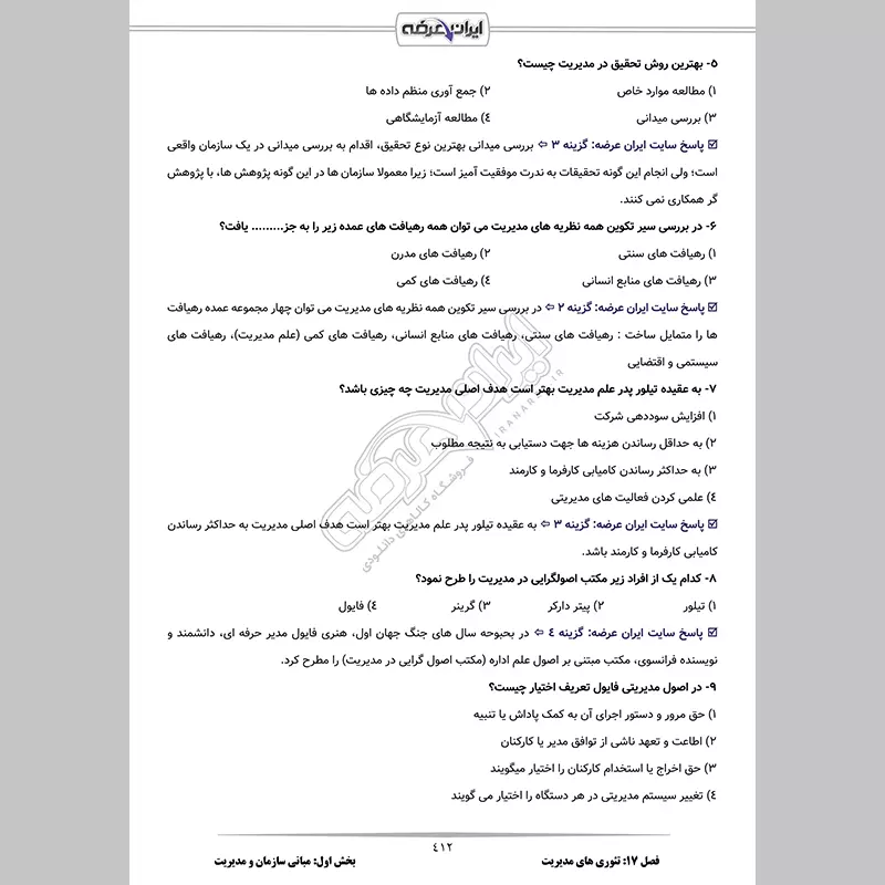 1404/07/22 آپدیت سوالات تئوری های مدیریت