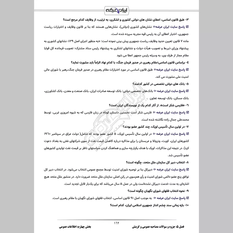 سوالات استخدامی آزمون فرزندان شهدا و جانبازان با جواب