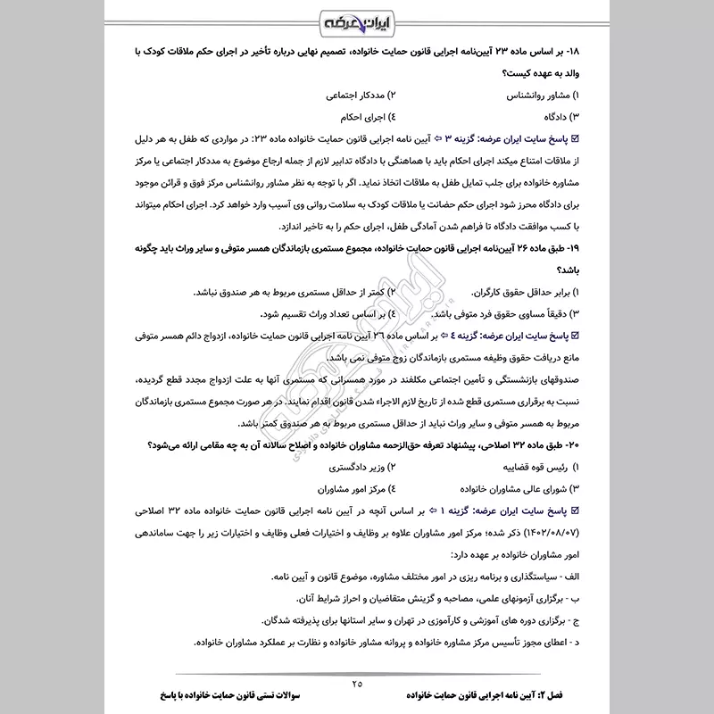 سوالات آزمون مشاوره خانواده قوه قضائیه با جواب