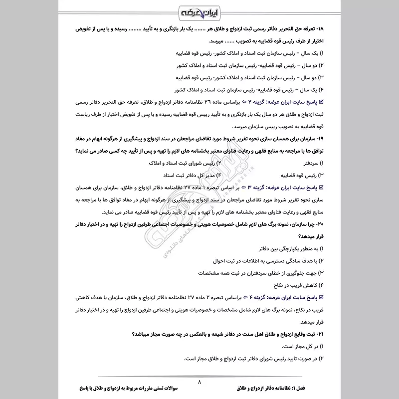 سوالات آزمون انتخاب سردفتر ازدواج و طلاق با جواب