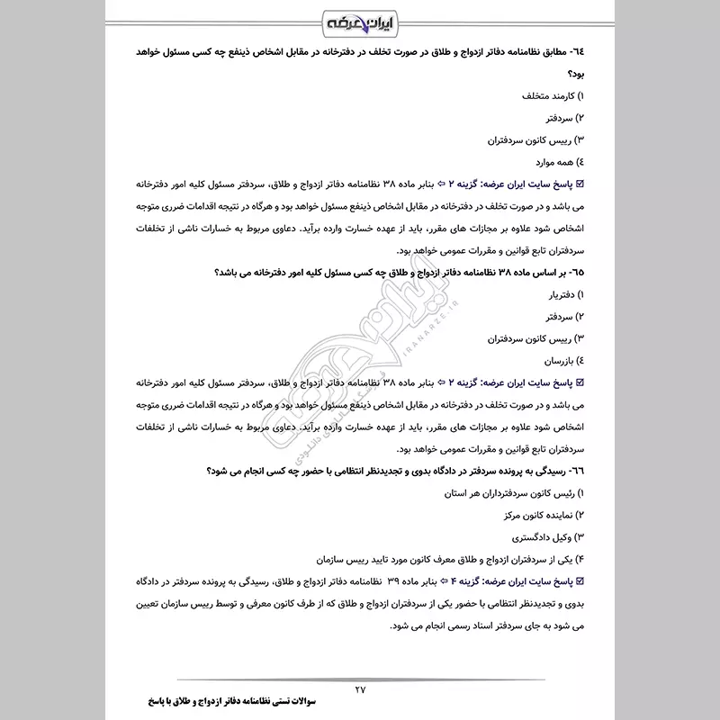 سوالات آزمون انتخاب سردفتر ازدواج و طلاق با جواب