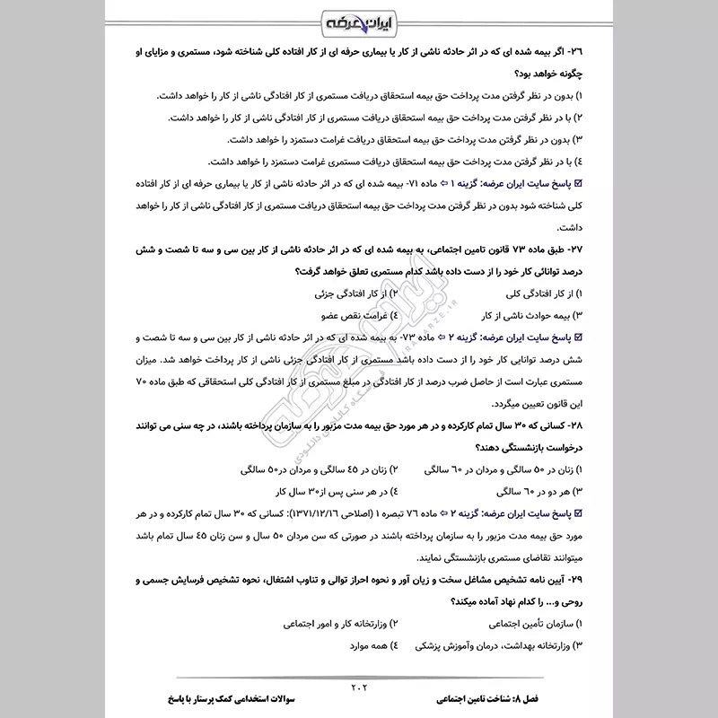 • فصل 8: سوالات شناخت تامین اجتماعی - صفحه 194 (100 سوال)