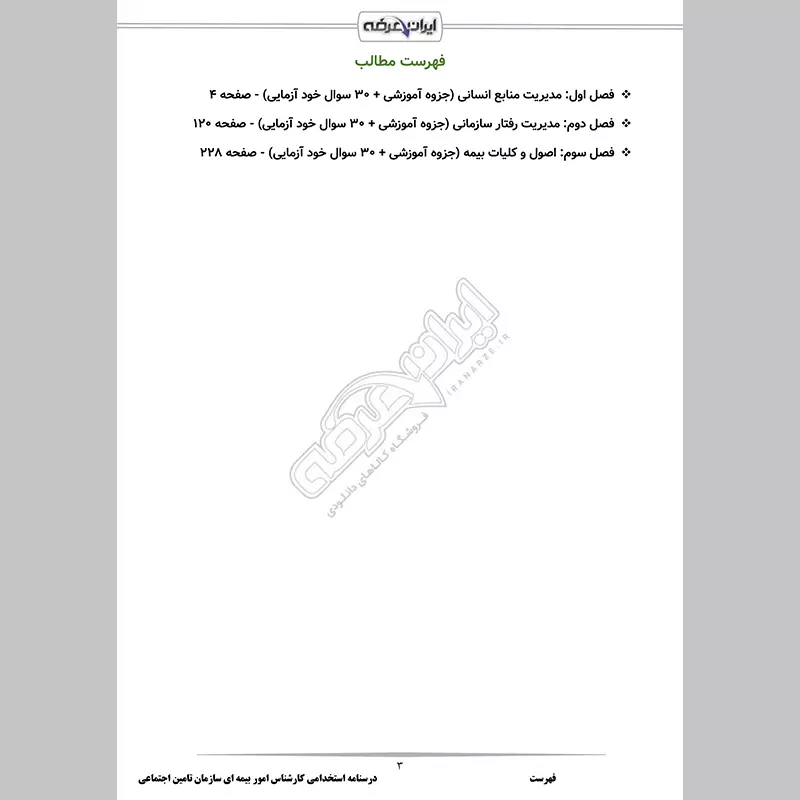 گروه آموزشی ایران عرضه اقدام به ارائه بسته ای جدید برای درسنامه آزمون استخدامی کارشناس امور بیمه ای سازمان تامین اجتماعی نموده است. این محصول شامل جزوه آموزشی، نکات مهم و سوالات خودآزمایی آزمون استخدامی کارشناس امور بیمه ای سازمان تامین اجتماعی می باشد که در دو نسخه pdf و چاپی قابل دریافت است. کارشناسان ما بر این باورند که این مجموعه عاملی مهم برای آمادگی شما در این آزمون بوده و قدمی مهم برای موفقیت در آن خواهد بود. با مطالعه این جزوه آموزشی در زمان کوتاه مهم ترین مطالب منابع آزمون استخدامی متصدی امور دفتری قوه قضاییه را فرا خواهید گرفت.